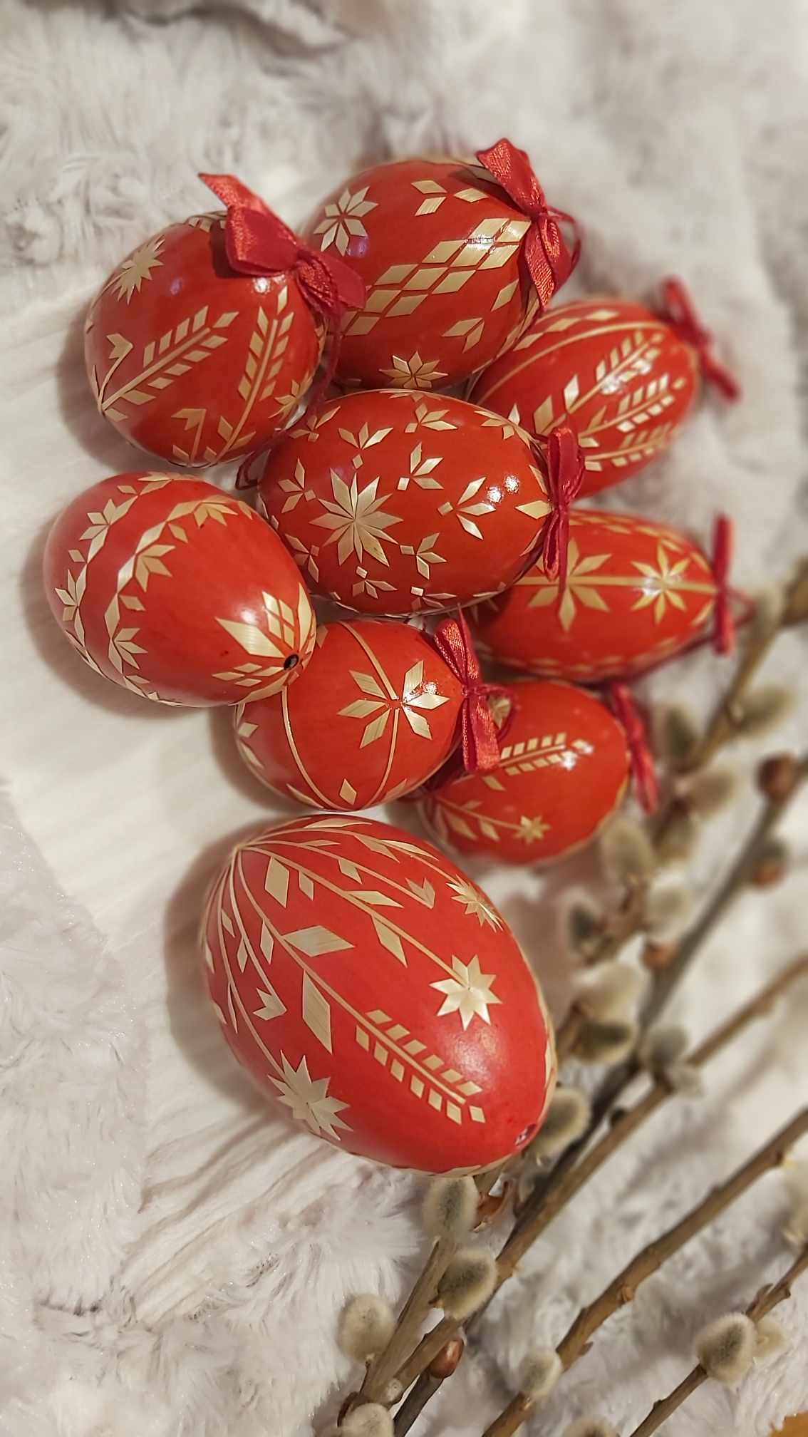 Príprava slamy: steblá slamy zberáme ešte v čase, keď je na poliach – tesne pred žatvou, umyjeme a namočíme do vody na 1-2 hodiny aby zmäkli. Následne slamu „žehlíme“ a to tak, že jednotlivé steblá pomocou nožníc čistíme z vnútornej strany akoby sme chceli zvlniť stužku. Tento proces opakujeme, kým slama nie je pekne tenká a čistá, tak aby sa s ňou dobre pracovalo. Po príprave slamy, si premyslíme vzor, ktorý pomocou jednotlivých kúskov slamy prilepujeme na vajíčko, ktoré predtým namaľujeme tušom. Ak je potrebné môžeme vajíčko tušom natrieť viackrát, aby bola farba pekná – jednoliata. Po vytvorení vzoru a jeho dokončení, navlečieme stužku a farby zafixujeme bezfarebným lakom v spreji. Farba vajíčka ešte viac vynikne a je krásne lesklé. Verím, že sa Vašim čitateľom bude tento tradičný postup zdobenia vajíčok páčiť a budem rada, ak sa nechajú inšpirovať.